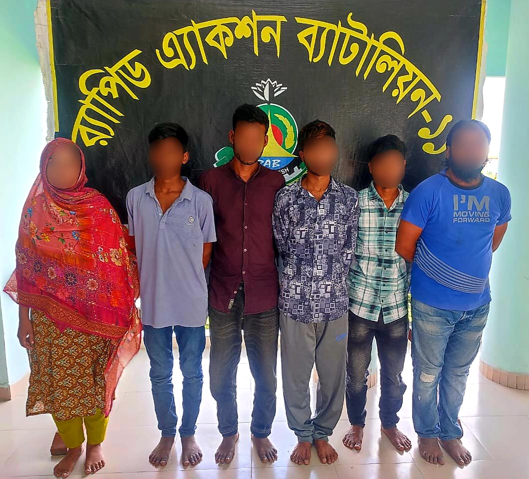 গ্রেফতারকৃতরা হলো-সাহেব আলীর পুত্র সজীব (১৯), স্ত্রী কল্পনা বেগম (২৯), শ্যালক শামীম মিয়া (২৬), হাফিজ শেখ (২৩), আমিনুল ইসলাম (৩৪) ও আকবর (২০)।